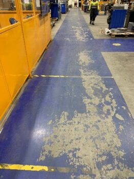 The client wanted us to apply our anti-slip system, along with clear demarcation lines and hatching around their loading bays.